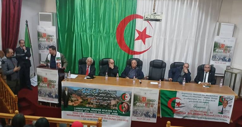 14-12-2024 | Sous le slogan: «Un peuple qui voulait la vie» Ce matin, au niveau du Musée Régional de Moudjahidine -Tizi Ouzou, a eu lieu une cérémonie commémorative en hommage au moudjahidine Bel Abbas Mohand Lounis (1933-2024), du village d'Ahriq, daira Bouzgane, en coordination avec la Direction des Moudjahidines et ayants droit de ka Wilaya de Tizi Ouzou, en présence des moudjahidines de la région, des membres de la Fédération du Front de Libération Nationale en France, des membres du bureau ds Wilaya de l'Organisation Nationale des Moudjahidines de Tizi Ouzou, la famille révolutionnaire..