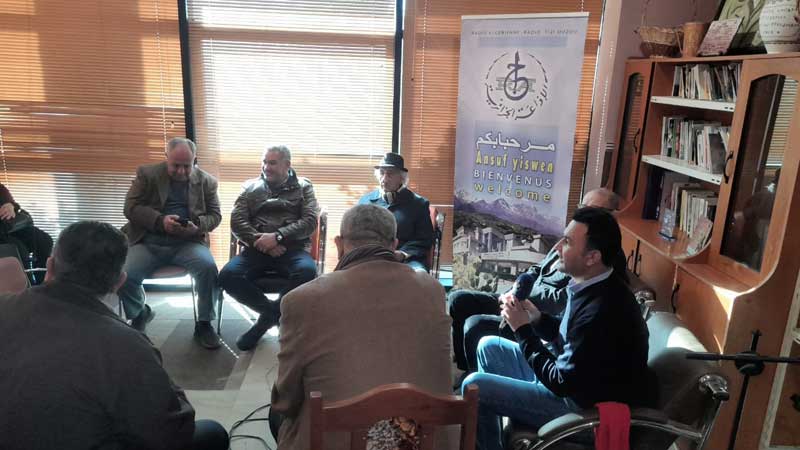 Enregistrement d'une séance radio sur les ondes radio Tizi-Ouzou, en présence du directeur du Musée Régional du Moudjahid-,