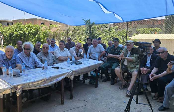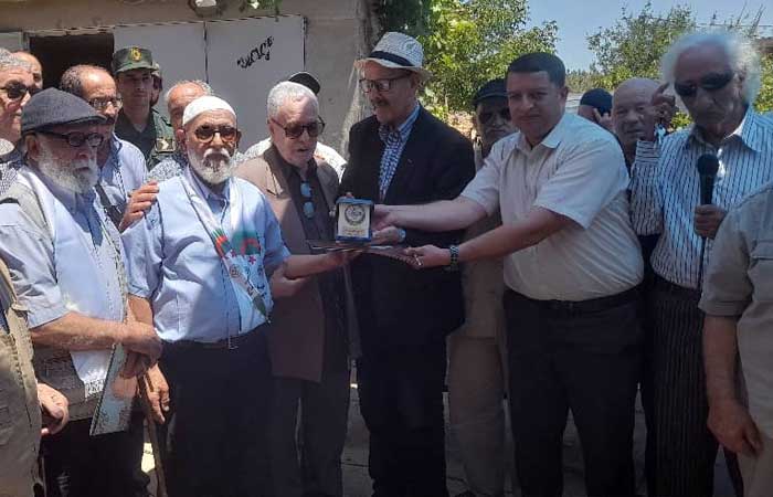 22/06/2024 | Une sortie sur le terrain au village d'Ait Bouhini, daira yakourene, en mémoires frères moudjahidines Mebane Ahmed et Meziane, aussi honorer les martyrs du village d'Ait Bouhini en présence des moudjahidines Ait Ahmed Ouali- Secrétaire du Bureau d'organisation Nationale des Moudjahidines à Tizi Ouzou - Badkof Mohamed - Secrétaire National de l'Organisation Nationale des Moudjahidines - Medras Khelifa, Chikini Mohamed Said - condamné à mort - Représentant djouzi Meziane, fils de Mohand Oulhaj, la famille révolutionnaire. Les Autorités locales et militaires et les médias.